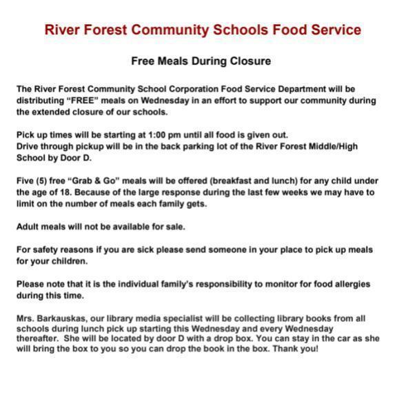 Free Meals During Closure (Update 5.1.2020)
