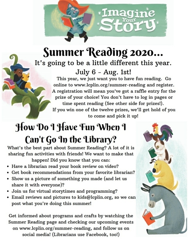 The Lake Station Library is still having a Summer Reading program this year. The program is for all ages, and the Lake Station Library is not requiring that folks keep track of what they read. Everyone who signs up and agrees to read will be entered in a raffle for the grand prize of their choice. That's it! There are some ideas to engage readers--they can post a picture with the book they are reading, or write a review, etc. but there is nothing required. The Lake Station Library is also offering some online programs for the kids. https://www.lcplin.org/summer-reading